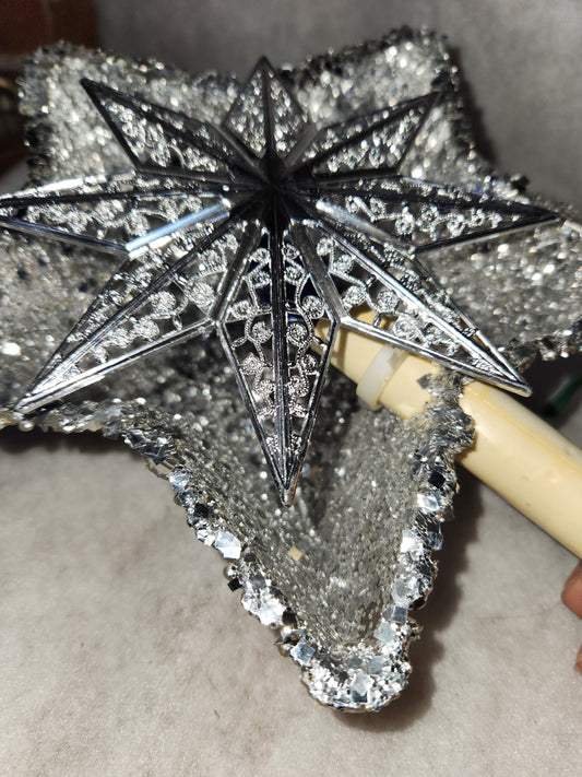 111 Vintage unique plastic star tree topper with reflector foil silver