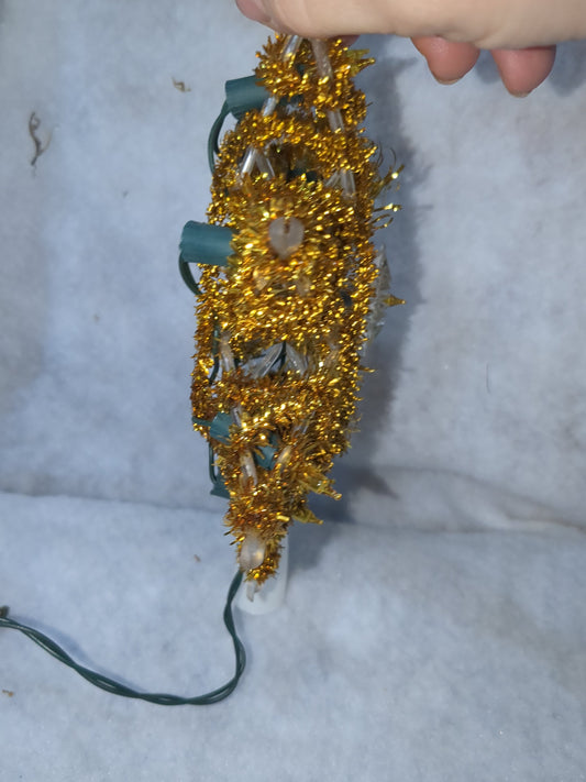 111 Vintage Christmas Tree Topper Santa Trim 10 Lights Tree Top Box gold tinsel tt564