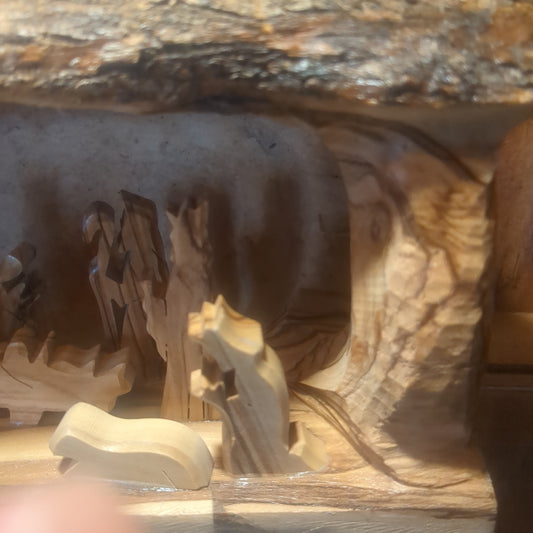 Nativity medium Grotto Carved in olive wood Branch - 4"x8" made in Bethlehem n2