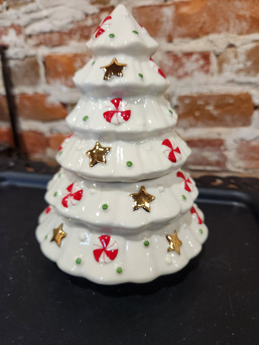New in Box Lenox Holiday Tree Treat Jar Peppermint And Stars 7" len58