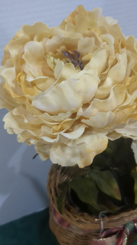 Off white floral arrangement in wicker basket