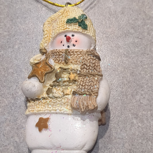 Oy4 Polycrylic snowman ornament with star yellow