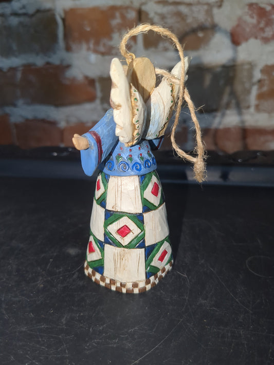Vintage Jim Shore Angel Heartwood Creek 2002 Quilt Design Folk Art 4" Christmas Ornament o765
