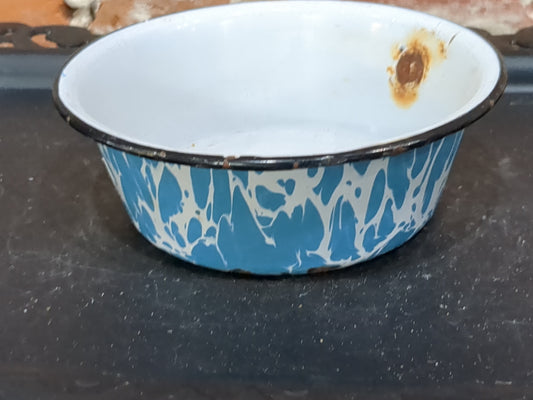 Vintage lighter blue enamel bowl en765