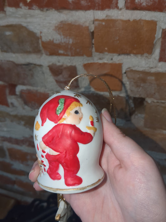 Vintage Lefton Christmas Bell Presents Under the Tree #08304 Porcelain Ornament Japan bell675