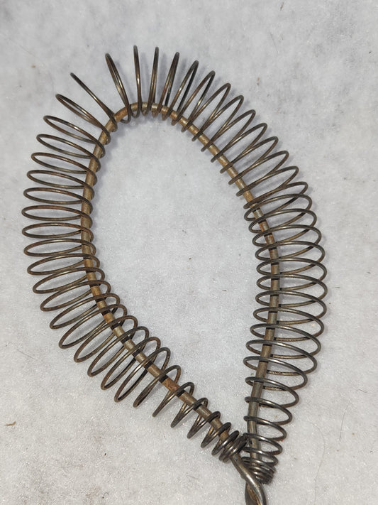 Vintage Kitchen Tool Utensil Twisted Coiled Whisk Stainless Steel worn red wooden handle ki88