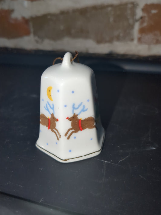 vintage Lillian Vernon Porcelain Bell 1986 Santa Sleigh Reindeer 2" Christmas Ornament bell56