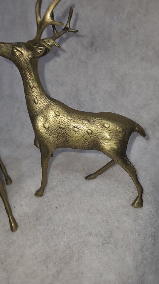Vintage Solid Brass Doe and 8 Point Prancing Buck Korea br150