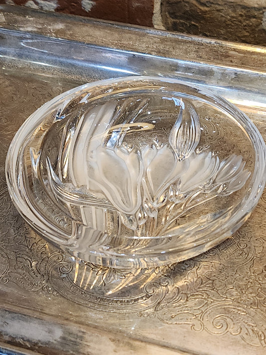 Vintage Mikasa Pressed Glass Parisian Iris Candy Dish Flowers Clear and Frosted gl08