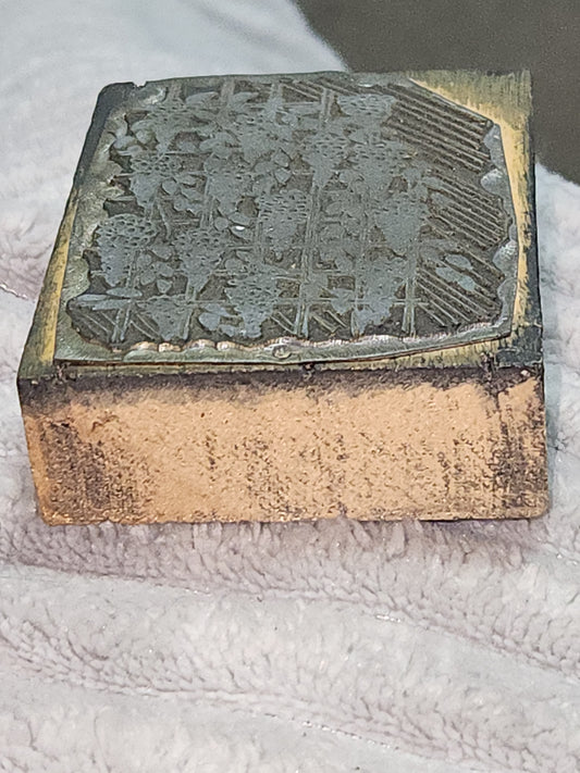 Vintage Wood Metal Newspaper Print Block Printer's Press Grapevine Grapes Flower pbgv