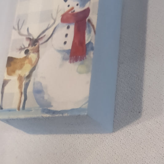 World Bazaars Polycrylic snowman. Holding teddy and tree