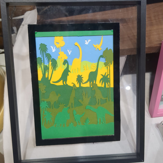 8 x 10” frame with 5 x 7" paper cut dinosaur scene
