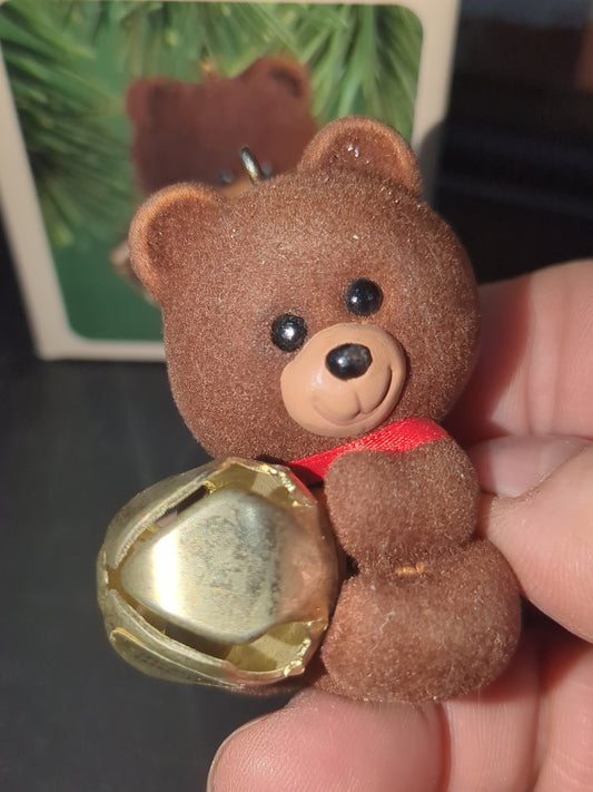 Vintage 1982 Hallmark Jingling Teddy Little Trimmers Bear w/ Bell Keepsake Ornament HO987