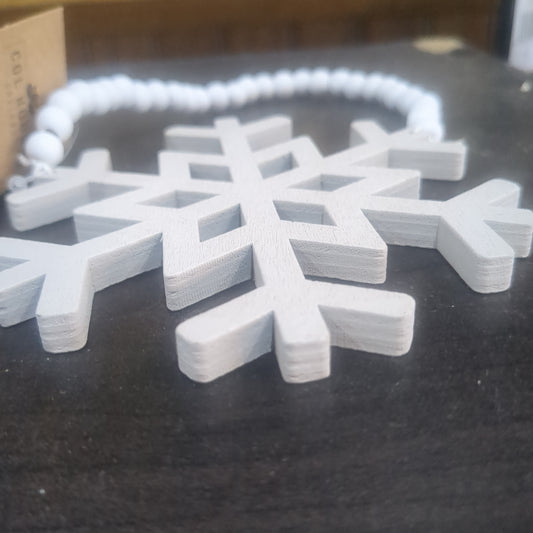 • Set of 6 white and natural wood ornaments, skis, sled, skates, mittens, etc. 2-3in