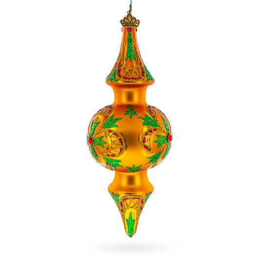 Golden Holly & Ivy Glitter Double-Ended Finial Drop Glass Christmas Ornament