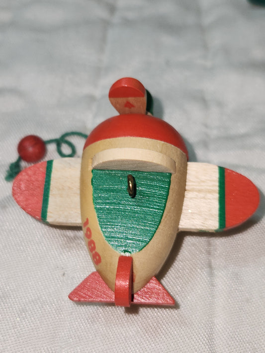 Vinyage Hallmark Ornament 1988 Wooden Airplane 5th in Nostalgic Childhood Ornaments Series