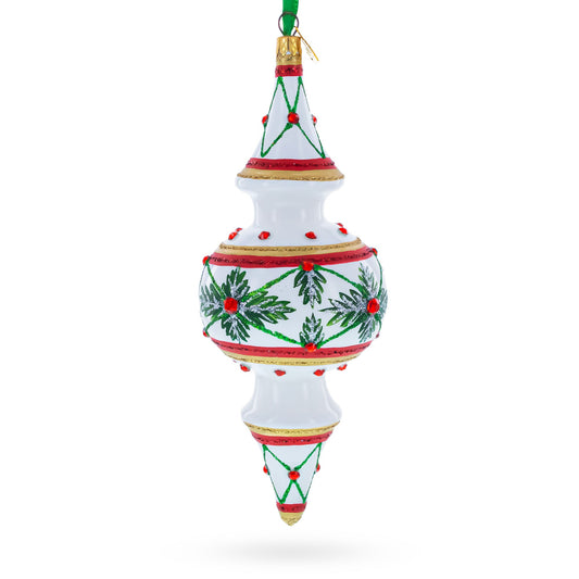 Winter Lattice & Holly Star Jeweled Double-Ended Finial Drop Glass Christmas Ornament