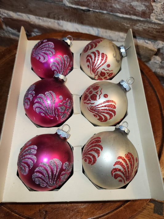 Vintage Shiny Brite Glass Ornaments with Mica Glitter In Box dated 1967 AS IS bo83