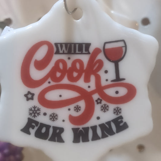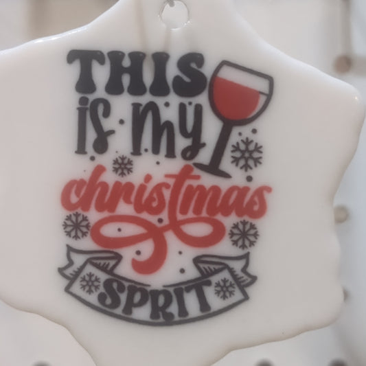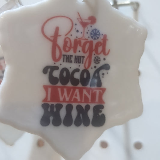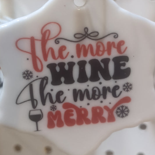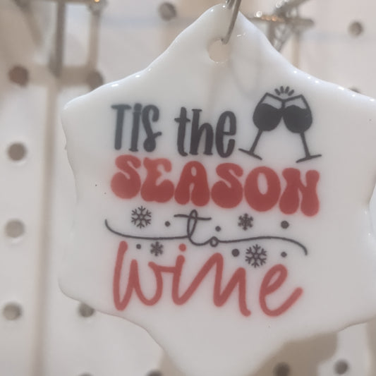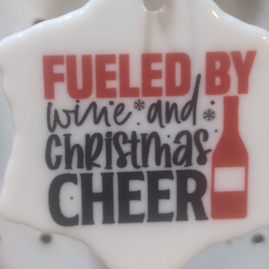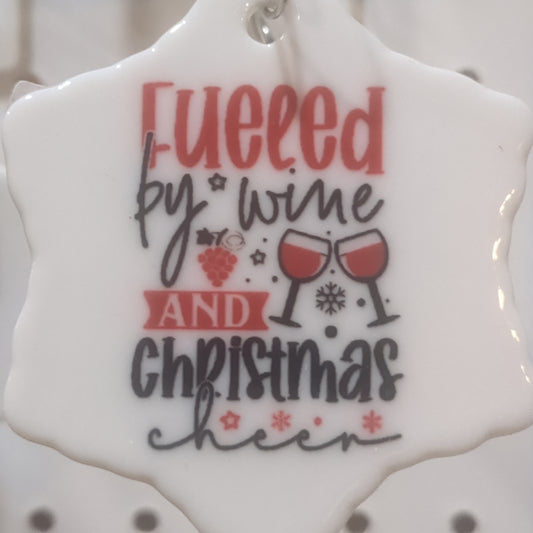 Ceramic wine ornament. Fueled by wine and Christmas cheer