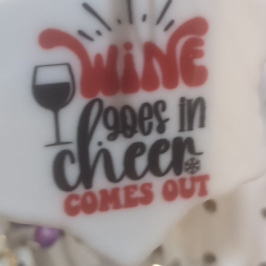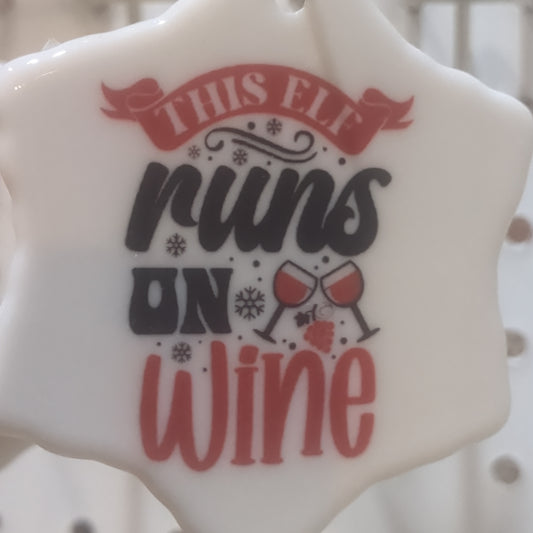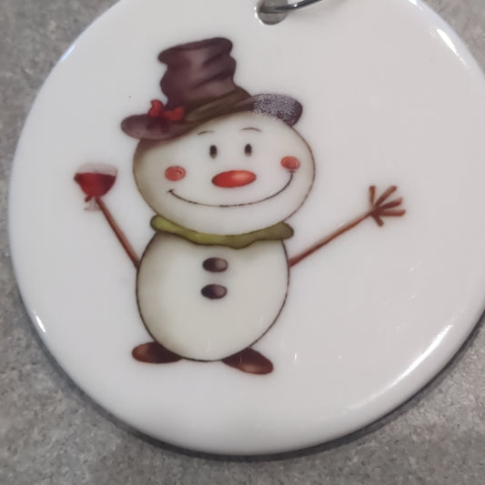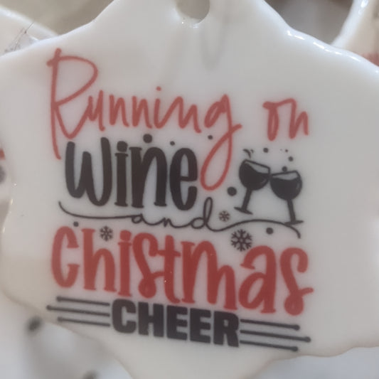 Ceramic wine ornament. Running on wine and Christmas cheer