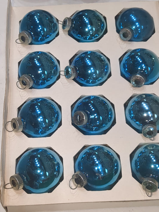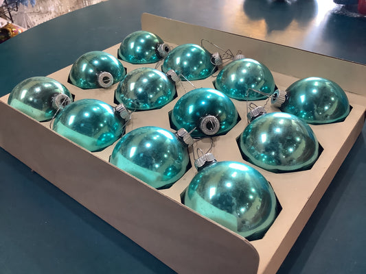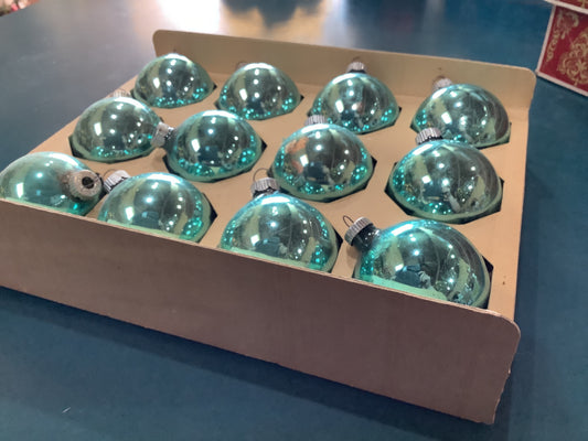 BO12 box of shiny brite bright turquoise ornaments 2 1/4"