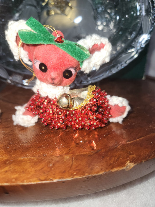 2 Vintage flocked push pin reindeer ornaments 3.5" chr120