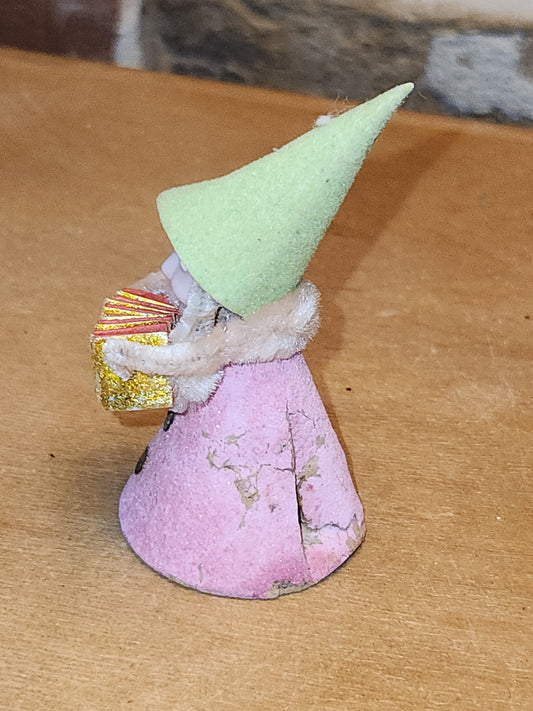Vintage Pinecone Elf Gnome Dwarf with Maracas Band Ornament Chenille Green Hat Plastic Face Mica Putz elf6