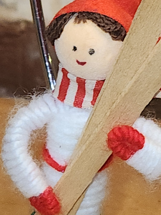 Vintage Fabric & Wood Boy w/Skies Christmas Ornament Germany