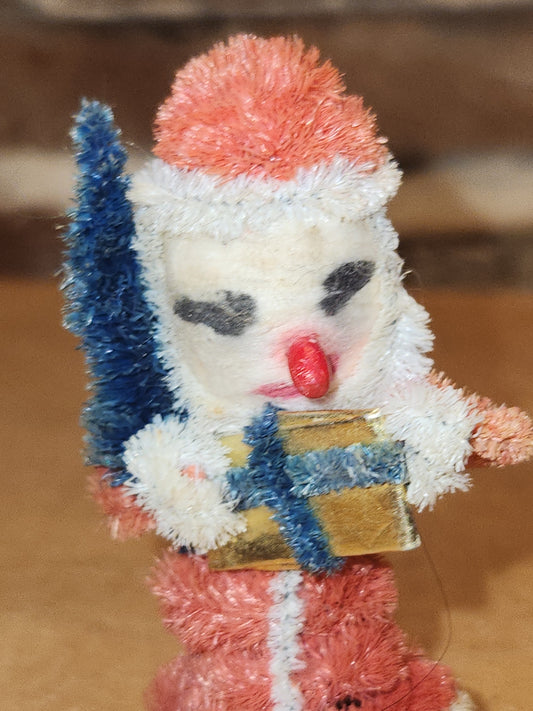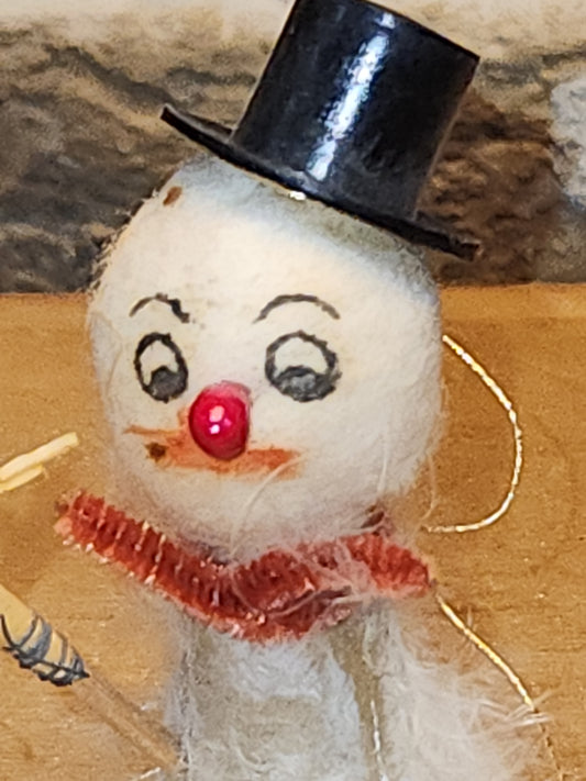 Vintage Commodore Japan Spun Cotton Snowman Christmas Ornament