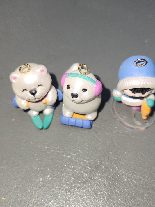 Vintage Avon Wee Winter Friends Ornaments Polar Bear, Seal, Eskimo Set of 3 Ornaments