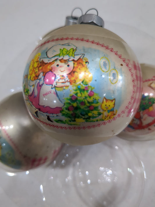 Vintage Coby Polly Pal Glass Christmas Ornaments set of three matching 3" and one 2 1/4" USA Made