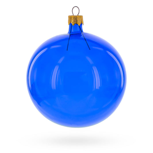 Set of 6 Translucent Glossy Blue Glass Ball Christmas Ornaments 4 Inches