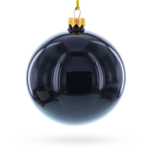 Set of 4 Glossy Black Glass Ball Christmas Ornaments 4 Inches