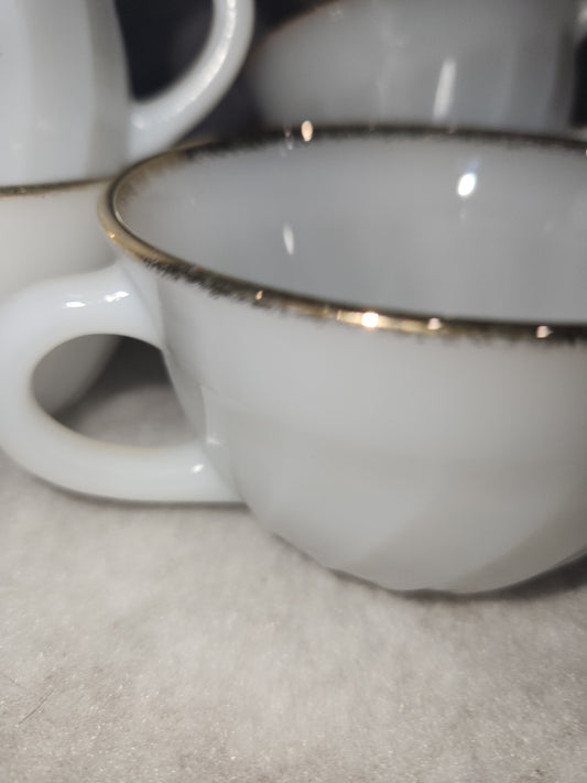 Vintage Fire King White Milk Glass Ribbed Swirl Tea Cup Oven Ware set of 5 fk4