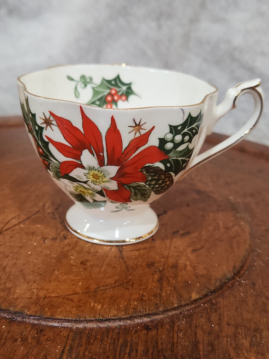 Vintage Queen Anne Noel Tea Cup Poinsettia Holly Christmas Rose replacement cup NO SAUCER