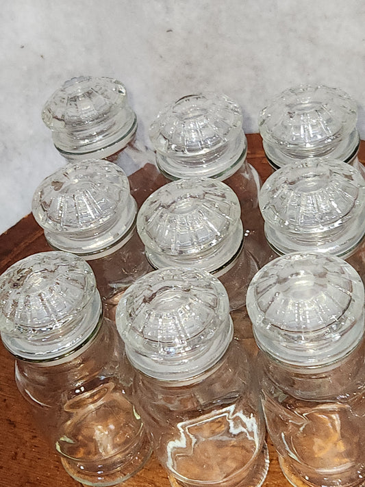 Vintage Apothecary Bottles Clear Cut Glass set of 9 sp90