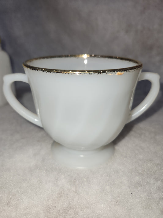 Vintage Fire King White Milk Glass Ribbed Swirl Tea Cup Oven Ware sugar bowl fk6