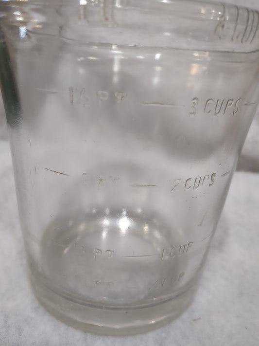 Vintage Antique egg beater with one quart 32 oz. 4 cups heavy glass container no handle no spout measuring kit166