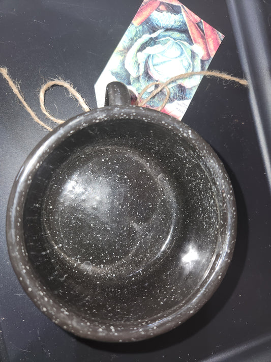 Vintage or vintage looking Black Enameled Cup with White speckles enm3
