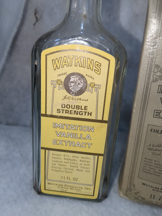 Vintage Watkins Double Strength Vanilla Extract 11 Fl Oz Bottle cork has Box g59