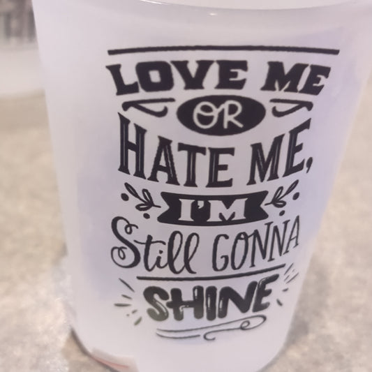 Imperfect Frosted glass shot glass. Love me or hate me I'm still going to shine