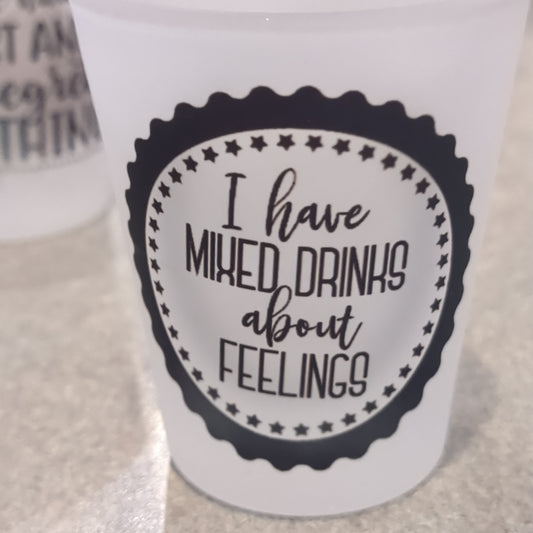 Imperfect Frosted glass shot glass. I have mixed drinks about feelings.