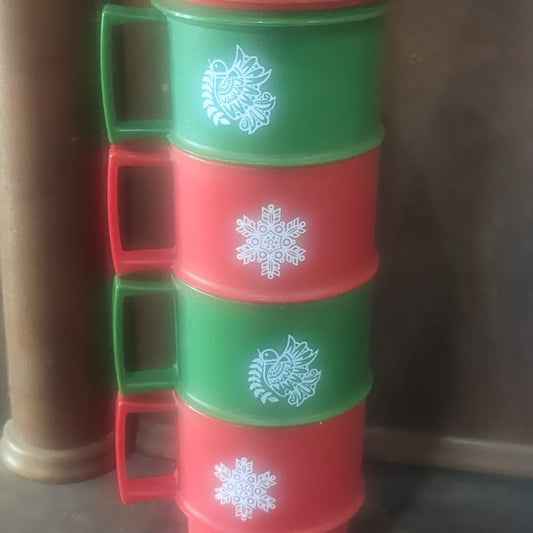 Vintage 4 Tupperware holiday cups with saucers tup9