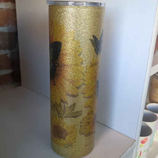 30 Ounce Stainless Steel Insulated Glitter Tumbler With Butterflies And Sunflowers