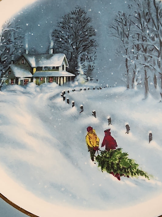 Vintage Avon Christmas 1976 Bringing Home the Tree Plate Original Box. Enoch Wedgewood England