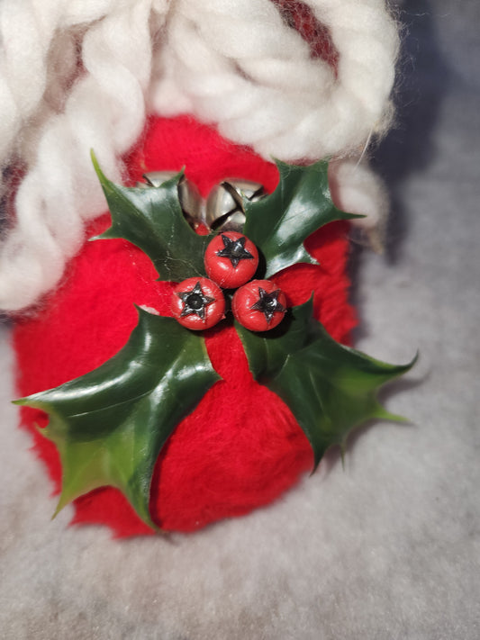 Vintage Red Santa Boot Planter Cover Holly & Bells White Trim ch111
