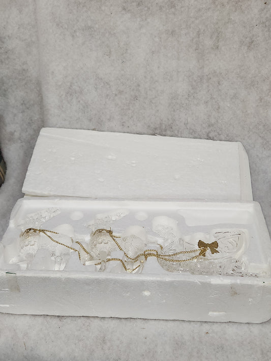 Vintage Sterling Clear Acrylic Sleigh with Reindeer With Gold Accents Christmas Decor