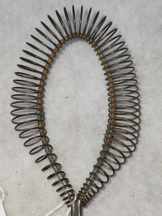 Vintage Kitchen Tool Utensil Twisted Coiled Whisk Stainless Steel worn red wooden handle ki88