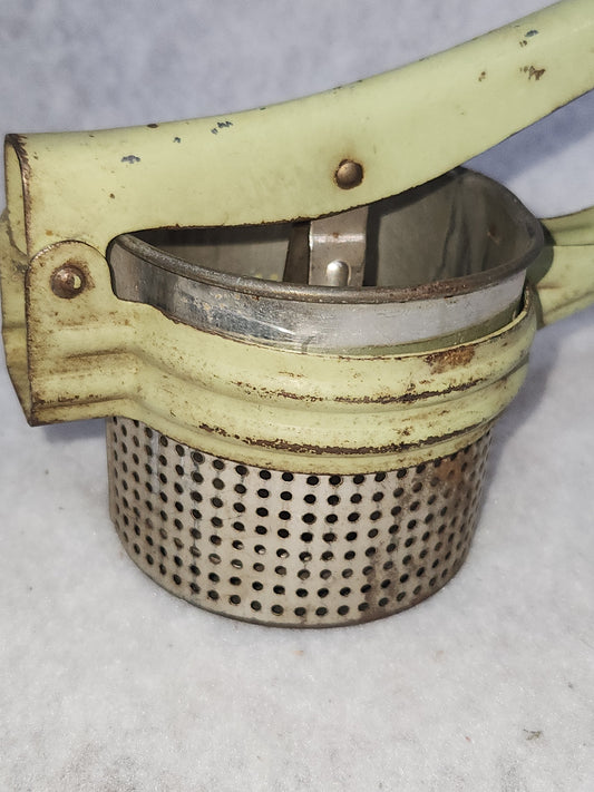 Vintage Old Green Potato Ricer Dirty Mint Green Handle Universal No Makers Mark kit920