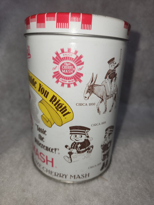Vintage 1995 EMPTY tin Chase’s Cherry Mash 12 OZ. Chase’s Candy Cop tin551